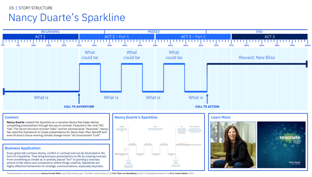 Better Stories have done the lord's work by cataloguing 15 storytelling frameworks, complete with instructions on when to use each. Some are better at winning hearts and minds, while others are more suited to the likes of case studies, keynotes and creating urgency.