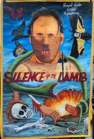 Now for cinema in Ghana, where they run mobile picture palaces complete with a generator, VHS player and TV. But posters aren’t that easy to come by so they paint their own. Genius (h/t Mark Whalley).